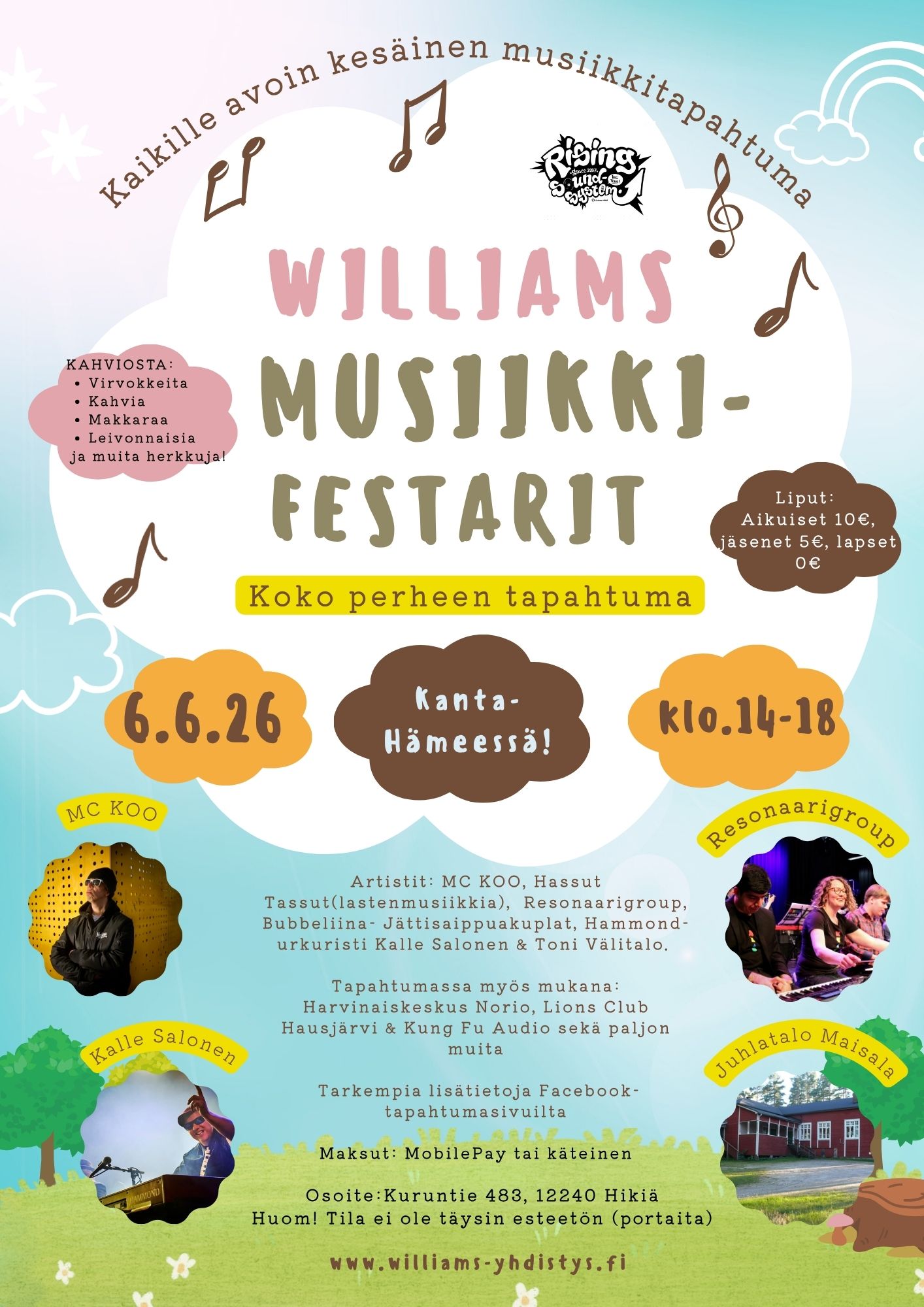 Maisalassa Williams musiikki-festarit 6.6.26 By Hanna | 23 huhtikuun, 2026 - 14:38 |23 huhtikuun, 2026 Uncategorized Bookmark the permalink.